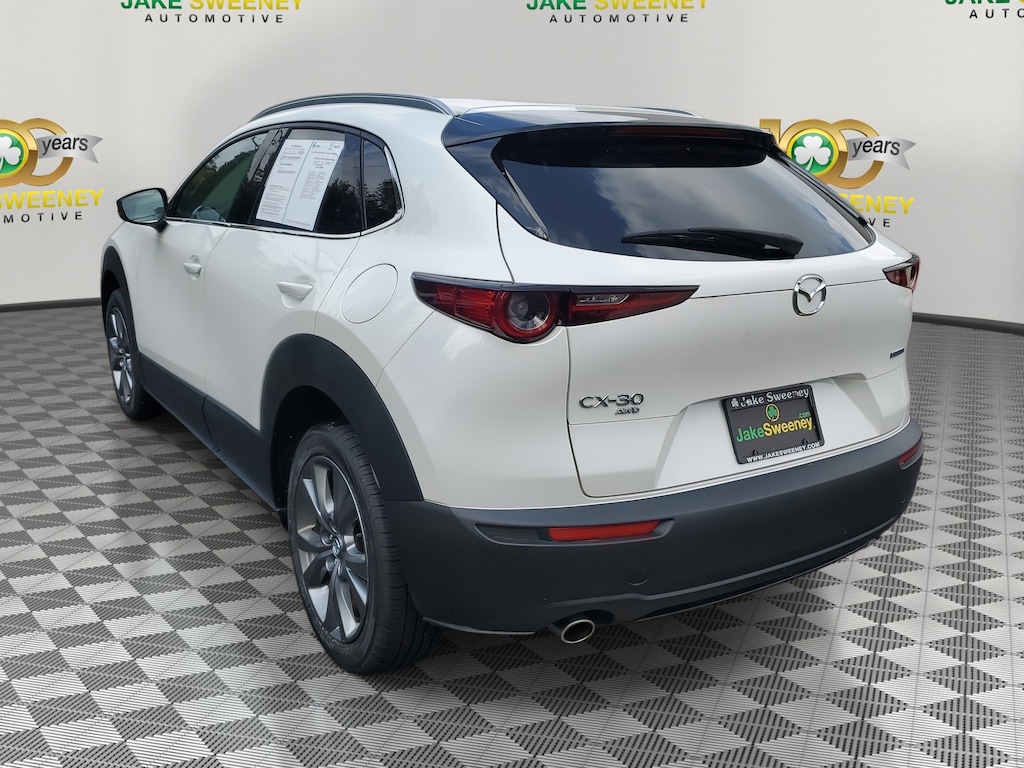 Try our One Owner 2023 Mazda CX-30 2.5 S Premium AWD in Snowflake White Pearl Mica, and take command of an advanced adventure machine! Motivated by a 2.5 Liter 4 Cylinder that supplies 191hp to a paddle-shifted 6 Speed Automatic transmission. Move this All Wheel Drive SUV to the trail with Off-road Traction Assist, and you can also score nearly 33mpg on the highway. Refined design cues enhance our Mazda CX-30's sophisticated exterior with signature LED lighting, a power sunroof, a power liftgate, a gloss-black grille, and alloy wheels.