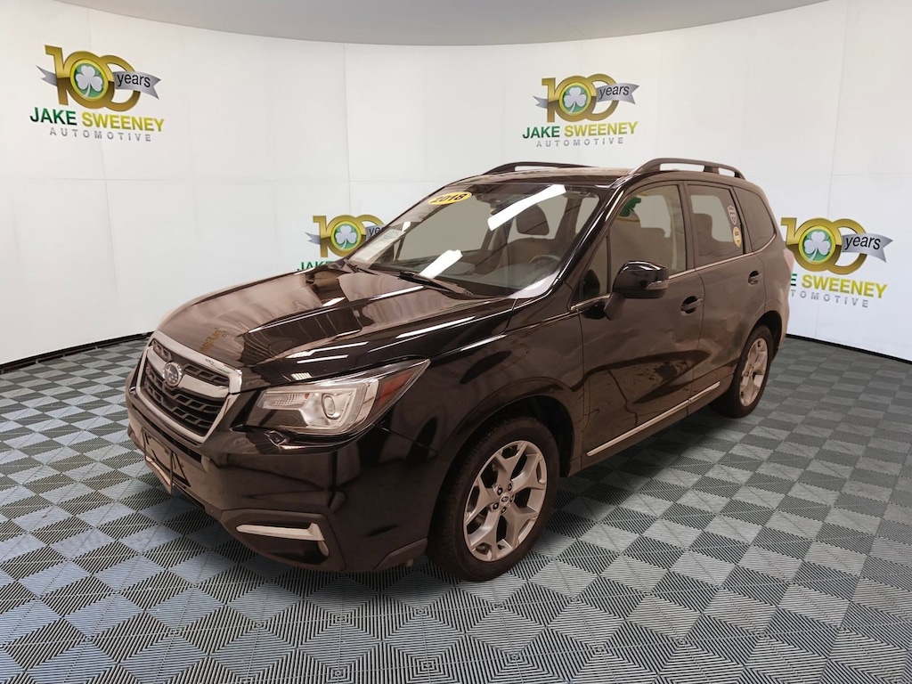 Our upscale 2018 Subaru Forester 2.5i Touring AWD SUV in Crystal Black Silica was designed specifically with your needs in mind! Powered by a 2.5 Liter BOXER 4 Cylinder offering 170hp connected to a Lineartronic CVT for efficient performance. This trail-friendly SUV also features Subaru's symmetrical All Wheel Drive for a sure-footed ride. It scores nearly 32mpg on the highway while equipped with LED lighting, fog lamps, a panoramic sunroof, a power tailgate, and alloy wheels, offering a great combination of style and functionality.